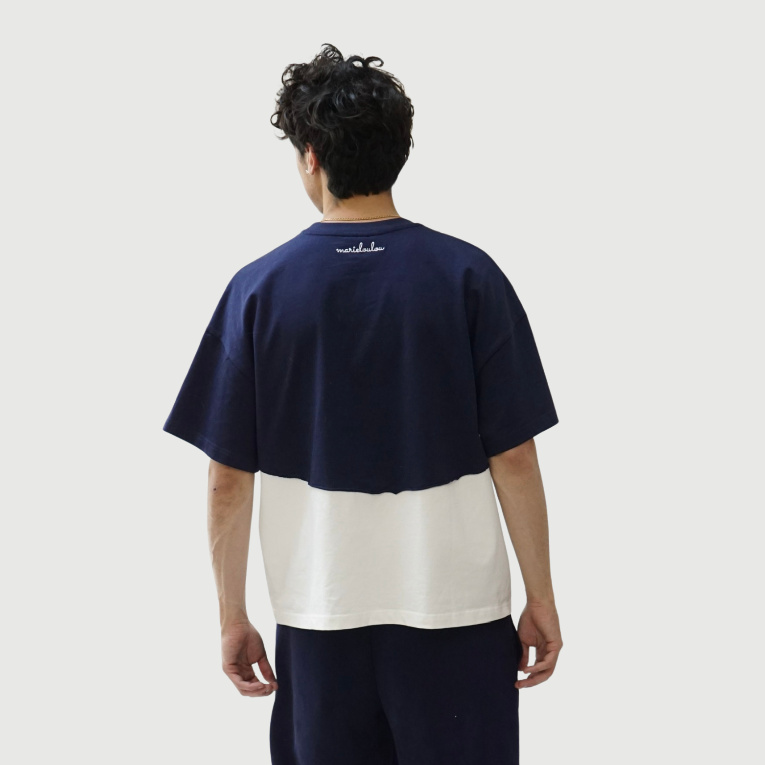 This two toned tee, crafted with heavy duty cotton, gives a sharp silhouette and boxy feel.